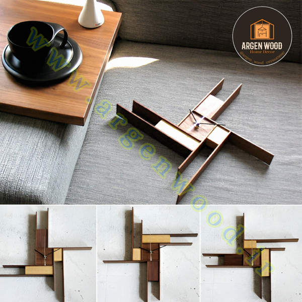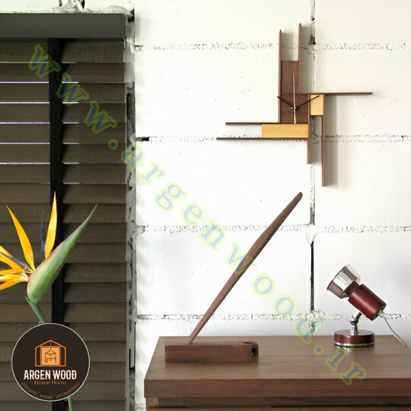 ساعت چوبی دیواری فانتزی ، مدرن و خاص طرح پازلی موندریان کد 614