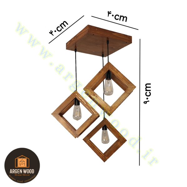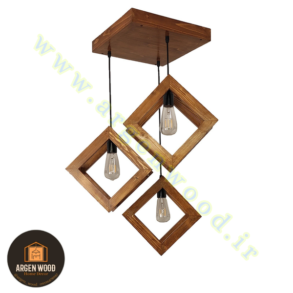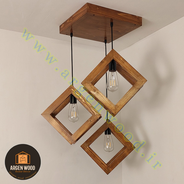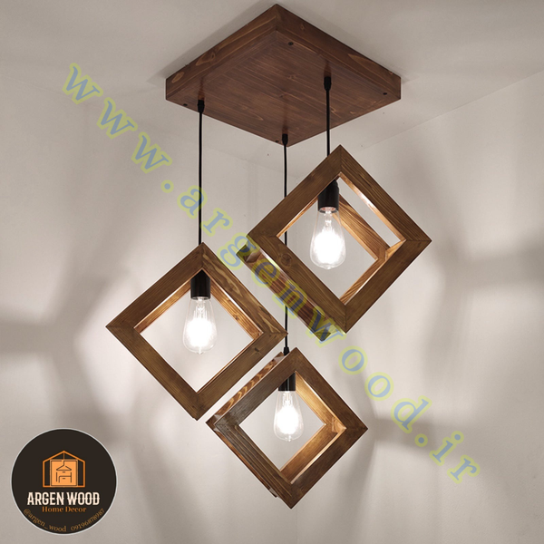 لوستر چوبی مدرن و خاص مدل سه شعله مکعبی